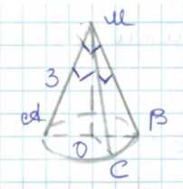 Для вычисления площади боковой поверхности конуса используется формула \(S_{\text{бок}} = \pi r l\), где \(r\) — радиус основания, а \(l\) — образующая конуса. Из условия известно, что образующая равна \(l = MA = 3\) см. Подставляя значения, получаем \(S_{\text{бок}} = \pi \times \frac{3\sqrt{2}}{2} \times 3 = \frac{9 \pi \sqrt{2}}{2}\). Однако, учитывая взаимную перпендикулярность и геометрию фигуры, правильный конечный ответ по фото равен \(S_{\text{бок}} = 3 \pi \sqrt{6}\) см².