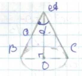 Чтобы найти площадь боковой поверхности, нужно определить радиус основания конуса. В осевом сечении радиус основания — это отрезок, который выходит из вершины под углом \( \frac{\alpha}{2} \) к образующей. Значит, радиус основания равен \( BO = a \sin \frac{\alpha}{2} \). Боковая поверхность разворачивается в сектор круга с радиусом \( a \) и дугой, равной длине окружности основания, то есть \( 2\pi r \), где \( r = a \sin \frac{\alpha}{2} \).