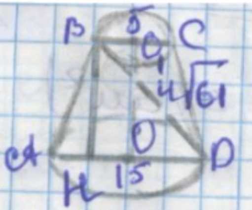 Радиусы оснований усечённого конуса равны 5 см и 15 см, а диагональ осевого сечения — \(4\sqrt{61}\) см. Найдите площадь боковой поверхности усечённого конуса.