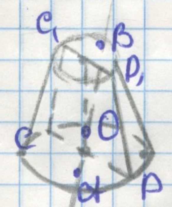 В усечённом конусе проведено осевое сечение \(CC_1D_1D\) и по разные стороны от него на основаниях конуса выбраны точки \(A\) и \(B\) (рис. 10.10).