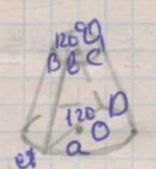 Радиусы оснований усечённого конуса определяются через стороны правильных многоугольников, лежащих в основании. Если основание конуса — правильный многоугольник со стороной \(a\), то радиус описанной окружности вокруг этого многоугольника равен \(R = \frac{a}{\sqrt{3}}\). Аналогично, если сторона основания меньшего многоугольника равна \(b\), его радиус будет \(r = \frac{b}{\sqrt{3}}\). Такое представление радиусов через стороны важно для дальнейших вычислений, так как позволяет выразить геометрические параметры усечённого конуса через известные величины.