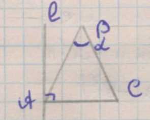 При вращении треугольника вокруг указанной оси образуется тело вращения, поверхность которого состоит из двух конусов и пояска между ними. Для вычисления полной площади поверхности нужно найти длину образующей (боковой стороны) и радиусы оснований, которые определяются как \(R = a \sin \frac{\alpha}{2}\) и \(r = a \sin \frac{\alpha}{2}\), поскольку оба радиуса равны из-за симметрии. Длина образующей есть \(a\).