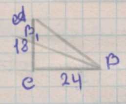 Найдем \(BC\): \(BC = \sqrt{18^2 + 24^2} = \sqrt{324 + 576} = \sqrt{900} = 30\) см.