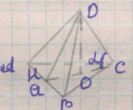 Пусть \( \tan\alpha = \frac{DO}{\frac{a}{\sqrt{3}}} \), тогда \( DO = \frac{a}{\sqrt{3}} \tan\alpha \).