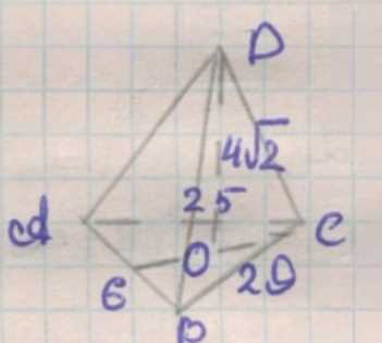 Высота конуса равна высоте пирамиды, то есть \( h = 4\sqrt{2} \) см. Образующая конуса — это гипотенуза прямоугольного треугольника, где один катет — высота конуса, другой — радиус основания. Находим её по теореме Пифагора:
