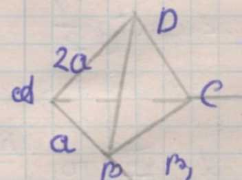 В основании пирамиды \(ABC\) сторона равна \(a\), боковое ребро \(DA = 2a\). Точки \(D\), \(B\), \(C\) лежат на боковой поверхности конуса с вершиной в \(A\). Значит, \(AB = a\), \(AC = a\), \(AD = 2a\).