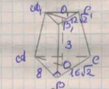 Для начала найдём длину диагонали основания \(DC\) по теореме Пифагора: \(DC = \sqrt{AB^2 + BC^2} = \sqrt{8^2 + (16\sqrt{2})^2} = \sqrt{64 + 512} = 24\) см.