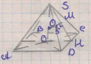 Расстояние от центра шара, описанного около правильной четырёхугольной пирамиды, до её боковой грани равно 5 см. Найдите радиус шара, вписанного в пирамиду, если радиус описанного шара равен 15 см.