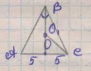 1. Осевое сечение конуса является прямоугольным треугольником с катетами: высота \(h\) и радиус основания \(r = \frac{10}{2} = 5\) см.
