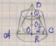 Радиус вписанной в конус сферы: \(r=\frac{hR}{l+R}=\frac{R\cos\alpha}{1+\cos\alpha}\).