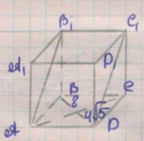 Основанием прямой призмы \(ABCDA_1B_1C_1D_1\) является ромб \(ABCD\), диагонали которого равны 8 см и \(4\sqrt{5}\) см. Угол между плоскостью, проходящей через прямые \(AD\) и \(B_1C_1\), и плоскостью основания призмы равен \(45^\circ\). Найдите объём призмы.