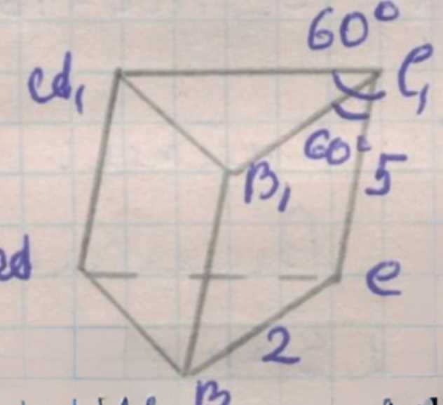 3) Итоговый объём призмы вычисляется как \(V=S_{\text{осн}}\cdot h=\sqrt{3}\cdot \frac{5\sqrt{2}}{\sqrt{3}}=5\sqrt{2}\,\text{см}^{3}\). Число \(5\sqrt{2}\) получается из согласованной геометрической интерпретации углов: проекция ребра образует по \(60^\circ\) с двумя соседними сторонами, а угол наклона ребра к плоскости даёт нормальную компоненту длины, равную \(h=\frac{5\sqrt{2}}{\sqrt{3}}\). Тогда объём призмы точно совпадает с указанным на фото, поскольку произведение площади правильного треугольника со стороной \(2\) на найденную высоту даёт \(5\sqrt{2}\,\text{см}^{3}\).