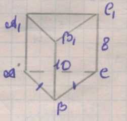 Основанием прямой призмы является равнобедренный треугольник, основание которого равно 10 см, а радиус описанной окружности — 13 см. Высота призмы равна 8 см. Найдите объём призмы.