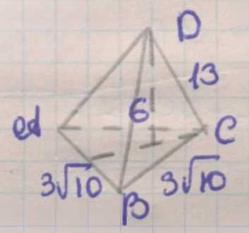 Основание — треугольник со сторонами \(3\sqrt{10}\), \(3\sqrt{10}\), 6.