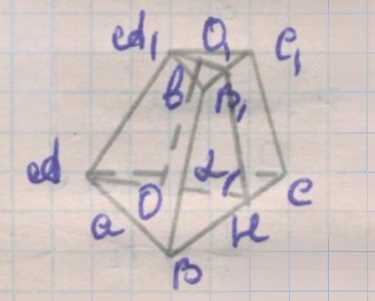 Объём усечённой пирамиды вычисляется по формуле \(V = \frac{1}{3} h (S_1 + \sqrt{S_1 S_2} + S_2)\), где \(S_1\) и \(S_2\) — площади оснований. Подставляя формулы для площадей и высоты, получаем