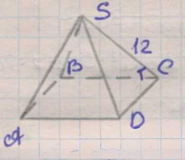 Боковое ребро (высота) пирамиды \( h = 12 \).