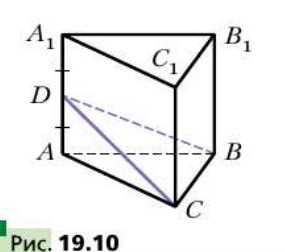 Объём призмы \(ABCA_1B_1C_1\), изображённой на рисунке 19.10, равен \(V\). Точка \(D\) — середина ребра \(AA_1\). Найдите объём пирамиды \(DABC\).