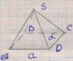 Площадь основания правильной четырёхугольной пирамиды равна \( S = a^2 \).