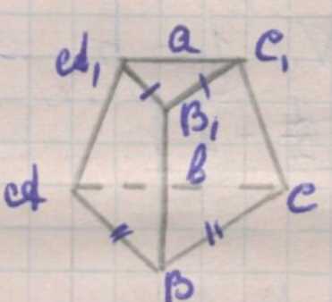 Высота усечённой пирамиды равна \(h = (a — b) \tan \alpha\), так как боковая грань перпендикулярна основаниям и является равнобокой трапецией.