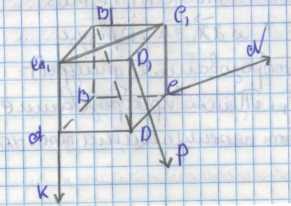 3) Вектор \(\overrightarrow{B_1D}\) направлен от точки \(B_1\) на верхней грани куба к точке \(D\) на нижней грани. В задании нужно отложить вектор, равный этому вектору, но начинающийся в точке \(D_1\), которая находится на верхней грани куба. Для этого переносим вектор \(\overrightarrow{B_1D}\) так, чтобы его начало совпало с точкой \(D_1\). Конец нового вектора обозначим точкой \(P\). Таким образом, вектор \(\overrightarrow{D_1P}\) равен по длине и направлению вектору \(\overrightarrow{B_1D}\), но начинается в другой точке, что соответствует условию задачи.