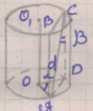1) Обозначим радиус основания цилиндра через \(r\), высоту через \(h\), объём через \(V\). По определению объёма кругового цилиндра имеем \(V=\pi r^{2}h\). Чтобы выразить \(V\) через параметры задачи \(\alpha\), \(\beta\) и \(d\), нужно связать \(r\) и \(h\) с этими величинами, используя геометрию сечения плоскостью, параллельной оси цилиндра. Такая плоскость пересекает каждое основание по хорде, причём дуга, которую она отсекает в основании, имеет градусную меру \(\alpha\). В круге центральный угол, стягивающий эту хорду, равен \(\alpha\), поэтому половине угла \(\frac{\alpha}{2}\) соответствует прямоугольный треугольник с гипотенузой \(r\) и прилежащим катетом, равным расстоянию от центра круга до секущей плоскости. Длина хорды равна \(2r\sin\frac{\alpha}{2}\), а расстояние от центра круга до хорды равно \(r\cos\frac{\alpha}{2}\).