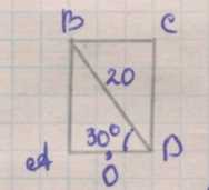 По углу между диагональю и основанием: \(\cos 30^\circ=\frac{r}{20}\Rightarrow r=20\cdot\frac{\sqrt{3}}{2}=10\sqrt{3}\text{ см}\).