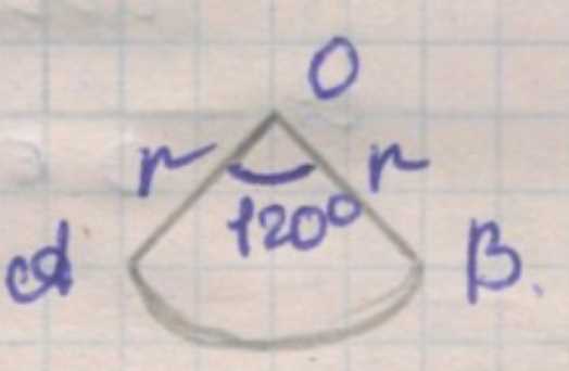 1) Развёртка боковой поверхности конуса является сектором круга с радиусом образующей \(l\) и центральным углом \(120^\circ\). Длина дуги сектора равна длине окружности основания конуса, поскольку при сворачивании дуга становится окружностью основания. Поэтому получаем равенство длин: \(2\pi R=\frac{120^\circ}{360^\circ}\cdot 2\pi l=\frac{2\pi l}{3}\). Отсюда следует прямая пропорция между радиусом основания и образующей: \(R=\frac{l}{3}\). Это ключевая связь, позволяющая выразить все искомые величины через одну переменную \(l\).