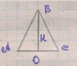 Из геометрии равностороннего треугольника: \(r=\frac{a}{\sqrt{3}}\), где \(a\) — его сторона. Здесь \(a=\sqrt{4R^{2}+H^{2}}\), значит \(r=\frac{\sqrt{4R^{2}+H^{2}}}{\sqrt{3}}\).