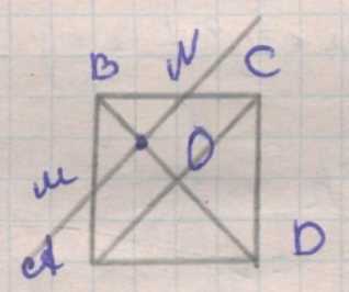 Пусть сторона квадрата \(ABCD\) равна \(a\), диагонали пересекаются в \(O\). Возьмём середину \(M\) отрезка \(BO\) и проведём через неё прямую \(l\parallel AC\).
