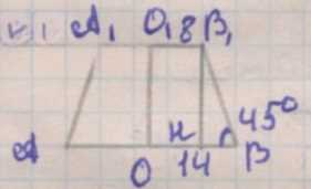 Высота \(h\) находится из соотношения \(\tan 45^\circ = \frac{h}{r_2 — r_1}\), значит \(h = 14 — 8 = 6\).