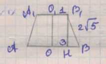 Найдём высоту усечённого конуса по образующей: по теореме Пифагора \(l^{2}=h^{2}+(R-r)^{2}\). При \(R=3\), \(r=1\), \(l=2\sqrt{5}\) получаем \(h^{2}=(2\sqrt{5})^{2}-(3-1)^{2}=20-4=16\), значит \(h=4\).