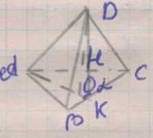 1) Рассмотрим правильную треугольную пирамиду с вершиной над центром равностороннего основания. Вписанный шар касается основания и всех трёх боковых граней; его центр лежит на оси симметрии пирамиды, то есть на высоте. Пусть высота пирамиды равна \(H\), а двугранный угол между плоскостью основания и боковой гранью вдоль ребра основания равен \(\alpha\). Тогда направление от центра шара к точке касания с боковой гранью перпендикулярно этой грани, а проекция этого радиуса на плоскость, перпендикулярную ребру, образует прямоугольный треугольник с углом \(\alpha\) между гранью и основанием. В таком сечении расстояние от оси высоты до линии пересечения боковой грани сечением связано с высотой через тангенсы и котангенсы угла \(\alpha\).