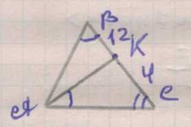 По данным \(BK=12\) см, \(KC=4\) см, значит \(BC=BK+KC=16\) см.