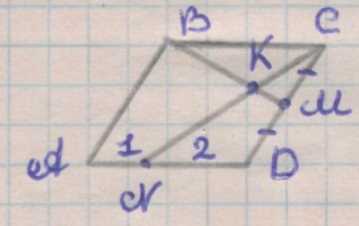 На сторонах CD и AD параллелограмма ABCD отметили соответственно точки M и N так, что CM : MD = 1 : 1 и AN : ND = 1 : 2. Отрезки BM и CN пересекаются в точке K. Найдите отношение BK : KM.