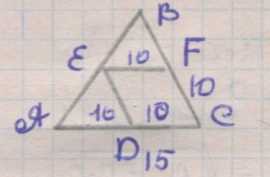 По подобию: \( \frac{EF}{AC}=\frac{EB}{AB}=\frac{BF}{BC} \Rightarrow \frac{10}{15}=\frac{x}{x+10}\), где \(x=BF\) — часть стороны \(BC\).