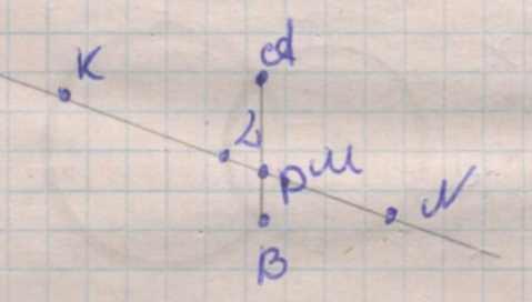 Рассмотрим пересекающиеся окружности \(\omega_1\) и \(\omega_2\) с точками пересечения \(A\) и \(B\). Пусть \(P\in AB\), через \(P\) проведены хорды \(KM\subset\omega_1\) и \(LN\subset\omega_2\).