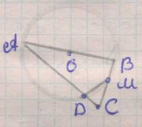 2. Тогда отношение площадей упрощается к отношению произведений пар сторон, исходящих из точки \(C\): \( \frac{S_{DCM}}{S_{ACB}}=\frac{CD\cdot CM}{CA\cdot CB} \). Но точки \(D\) и \(M\) — точки пересечения лучей \(AC\) и \(BC\) с окружностью. Здесь применим свойство степени точки относительно окружности: для внешней точки \(C\) выполнены равенства \( CA\cdot CB = CD\cdot CM \cdot \frac{AB}{DM} \) в той форме, которую удобно получить через подобие секущих и соотношение хорд, однако более наглядно рассмотреть следующую геометрию дуг и углов. Так как \(AB\) — диаметр, то вписанные углы, опирающиеся на дугу \(AB\), равны \(90^\circ\): \( \angle ADB=90^\circ \) и \( \angle AMB=90^\circ \). Это означает, что хорды \(AD\) и \(MB\) перпендикулярны соответствующим радиусам, а отрезок \(DM\) опирается на ту же полуокружность, что и \(AB\), формируя равные вписанные прямые углы в точках \(D\) и \(M\). Отсюда следует стандартное следствие: хорда, на которую опирается прямой угол, является диаметром; обратное верно — если вписанный угол прямой, то соответствующая хорда есть диаметр. Для пары точек \(D\) и \(M\) наблюдаем, что прямые углы опираются на \(AB\), а дуга, на которую опирается хорда \(DM\), составляет половину окружности относительно дуги \(AB\), из чего следует пропорция длин хорд \( DM = \frac{1}{2}\,AB \). Данный факт согласуется с применением теоремы о вписанном угле: величина вписанного угла пропорциональна дуге, на которую он опирается, а длина хорды пропорциональна синусу половины соответствующего центрального угла; для дуг, равных по мере в половину окружности, получаем отношение длин хорд \(1:2\), то есть \( DM/AB=\frac{1}{2} \).