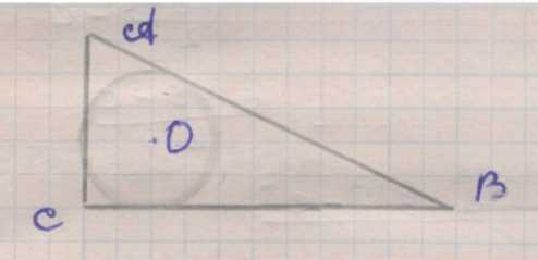 1) Пусть прямоугольный треугольник \(ABC\) с прямым углом при \(C\), катеты \(AC=a\), \(BC=b\), гипотенуза \(AB=c\). Радиус вписанной окружности в прямоугольный треугольник выражается через стороны как \(r=\frac{a+b-c}{2}\). По условию задачи радиус равен полуразности катетов, то есть \(r=\frac{b-a}{2}\). Приравниваем оба выражения радиуса: \(\frac{a+b-c}{2}=\frac{b-a}{2}\). Домножаем на \(2\) и приводим подобные члены: \(a+b-c=b-a\Rightarrow a-c=-a\Rightarrow 2a=c\). Получили важное соотношение между катетом \(a\) и гипотенузой \(c\).