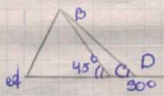 1) Пусть окружность, описанная около \(\triangle ABC\), имеет радиус \(R=8\sqrt{2}\) см, а окружность, описанная около \(\triangle ABD\), имеет радиус \(R_1\). На продолжении стороны \(AC\) за точку \(C\) выбрана точка \(D\) так, что \(\angle ADB=30^\circ\). Заметим, что угол \(\angle ADB\) является вписанным углом окружности, описанной около \(\triangle ABD\), и он опирается на хорду \(AB\). Тогда центральный угол, соответствующий дуге \(AB\) на этой окружности, равен \(2\cdot 30^\circ=60^\circ\). Для любой окружности длина хорды через радиус и центральный угол выражается так: \(AB=2R_1\sin\left(\frac{60^\circ}{2}\right)=2R_1\sin 30^\circ=2R_1\cdot \frac{1}{2}=R_1\). Однако удобнее использовать равенство длины хорды через известный угол при вписанном треугольнике: в равнобедренном треугольнике с вершиной на окружности над дугой \(60^\circ\) сторона, противолежащая углу \(60^\circ\), имеет вид \(AB=2R_1\sin 60^\circ=2R_1\cdot \frac{\sqrt{3}}{2}=\sqrt{3}\,R_1\). Это стандартная формула: сторона произвольного треугольника равна \(2R\sin\) соответствующего противоположного угла.