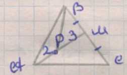На отрезке \(AM\) точка \(P\) делит \(AM\) в отношении \(AP:PM=2:3\), то есть \(AP=\frac{2}{5}AM\). Треугольники \(ABP\) и \(ABM\) имеют общую высоту из \(B\) к \(AM\), значит их площади пропорциональны основаниям \(AP\) и \(AM\): \(S_{\triangle ABP}=\frac{AP}{AM}\,S_{\triangle ABM}=\frac{2}{5}\cdot 20=8\).