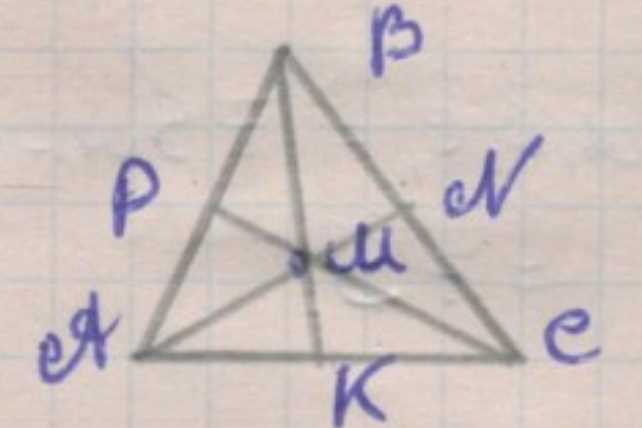 Так как \(M\) принадлежит двум медианам треугольника \(ABC\), то они пересекаются в одной точке, следовательно, \(M\) — точка пересечения медиан треугольника \(ABC\).