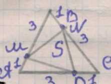 Пусть \(S_{MNP}=S\). Площадь всего треугольника разбивается как \(S_{ABC}=S_{MNP}+S_{ABP}+S_{BCM}+S_{CAN}=S+3\cdot\frac{4}{9}S_{ABC}\). Отсюда \(S_{ABC}=S+\frac{12}{9}S_{ABC}\), значит \(S=\left(1-\frac{12}{9}\right)S_{ABC}=-\frac{3}{9}S_{ABC}\), что неверно по знаку, следовательно нужно учесть, что центральный треугольник получается вычитанием трёх малых треугольников: \(S_{MNP}=S_{ABC}-\left(S_{ABP}+S_{BCM}+S_{CAN}\right)\).