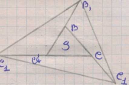 Два треугольника АВС и \(A_1B_1C_1\) расположены так, что точка B — середина отрезка \(AB_1\), точка C — середина отрезка \(BC_1\), точка A — середина отрезка \(CA_1\). Найдите площадь треугольника \(A_1B_1C_1\), если площадь треугольника АВС равна S.