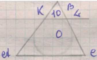 1) Рассмотрим окружность, вписанную в треугольник \(ABC\). Касательная прямая пересекает стороны \(AB\) и \(BC\) в точках \(K\) и \(L\) соответственно, образуя треугольник \(KBL\). Из свойства касательных к окружности из одной точки: отрезки касательных, проведённые из одной точки к окружности, равны. Поэтому из точки \(K\) к окружности равны отрезки касательных до точек касания на \(AB\) и на продолжении, но нам важнее, что на стороне \(AB\) отрезок касательной от \(K\) до точки касания равен соответствующему отрезку от \(B\); аналогично для точки \(L\) на стороне \(BC\). В контексте периметра треугольника \(KBL\) это даёт связь: длина \(KB\) на стороне \(AB\) дополняет \(AB\) до полной суммы касательных из \(K\) и из \(B\), а длина \(LB\) аналогично дополняет \(BC\). При этом отрезок \(KL\) равен сумме касательных из \(K\) и из \(L\) вдоль внешней линии, что в совокупности позволяет заменить сумму \(KB+BL+KL\) выражением через стороны исходного треугольника.