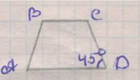 Так как боковые углы равны, а один угол равен \(45^\circ\), то образованный боковой стороной и основанием прямоугольный треугольник имеет высоту \(h\) и катет по основанию \(h\). Следовательно, разность оснований равна \(2h=4R\), а полусумма оснований \(m=\frac{a+b}{2}\) равна средней линии, которая вместе с высотой даёт площадь.