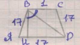 Трапеция равнобокая: диагональ биссектриса тупого угла, значит боковые стороны равны основаниям: \(AB=17\), \(CD=1\), \(AD=17\), \(BC=1\).