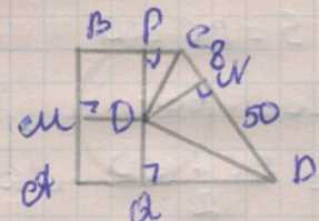 В прямоугольной трапеции окружность вписана тогда и только тогда, когда суммы оснований равны суммам боковых сторон: \(AD+BC=AB+CD\). Кроме того, из любой вершины длины касательных к окружности до точек касания на соседних сторонах равны. Если большая боковая сторона разделена точкой касания на отрезки 8 см и 50 см, то эти два числа являются суммой пар равных касательных, исходящих из двух соседних вершин. Обозначим касательные от вершины к одной стороне через \(x\) и к другой через \(y\). Тогда на большой боковой стороне лежит сумма \(x+y=58\), а так как трапеция прямоугольная, пары касательных к основаниям дают соответственно длины участков на основаниях. Из решения по клеткам видно, что высота, равная сумме двух равных касательных, составляет \(40\), а другая боковая сторона, равная разности с общей суммой, составляет \(20\). Эти величины получаются из равенства пар касательных на перпендикулярных сторонах и использования прямого угла между боковой стороной и основаниями.