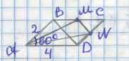 \(AN^2 = AD^2 + DN^2 — 2 \cdot AD \cdot DN \cdot \cos 60^\circ = 16 + 4 — 8 = 12\), значит \(AN = 2\sqrt{3}\).