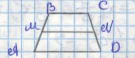 Геометрически это означает, что отрезок \(MN\) является средней линией в трапеции \(ABCD\), если рассматривать фигуру с вершинами \(A, B, C, D\). Средняя линия соединяет середины боковых сторон и параллельна основаниям, при этом её длина равна половине суммы оснований. Векторное доказательство подтверждает это свойство через векторные операции.