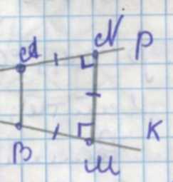 Дано, что точки \( A \) и \( N \) лежат на прямой \( p \), а точки \( B \) и \( M \) — на прямой \( k \). Также известно, что отрезки \( AN \), \( NM \) и \( MB \) равны между собой: \( AN = NM = MB \). Это указывает на то, что точки \( A \), \( N \), \( M \), \( B \) расположены так, что \( N \) и \( M \) делят отрезок \( AB \) на три равные части. При этом \( MN \) — перпендикуляр к обеим прямым, следовательно, \( MN \) является высотой в треугольнике \( ANB \).
